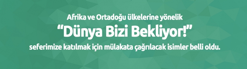 Afrika ve Ortadoğu ülkelerine yönelik `Dünya Bizi Bekliyor!` seferimize katılmak için mülakata çağrılacak isimler belli oldu.